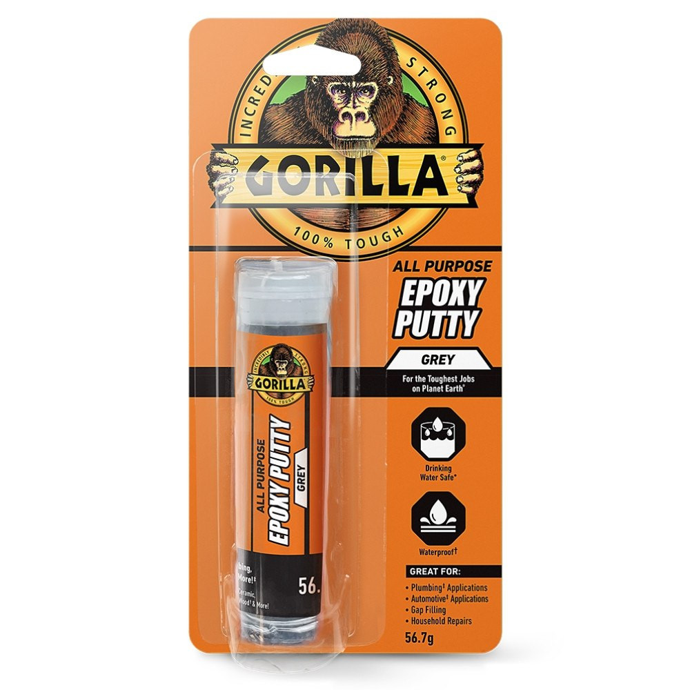 A Gorilla Epoxy Putty kiválóan használható vízvezeték-szerelési javításokhoz és autóipari alkalmazásokhoz. Hideg ivóvízzel érintkező felületeken is biztonságosan alkalmazható*, teljes kikeményedés után csiszolható, fúrható, festhető és faragható. A szürke színűre száradó anyag tökéletes választás repedések, lyukak, csövek, tartályok, szerelvények vagy szerkezeti elemek ideiglenes javítására.